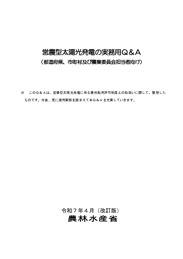 営農型太陽光発電の実務用Q&A (都道府県、市町村及び農業委員会担当者向け)